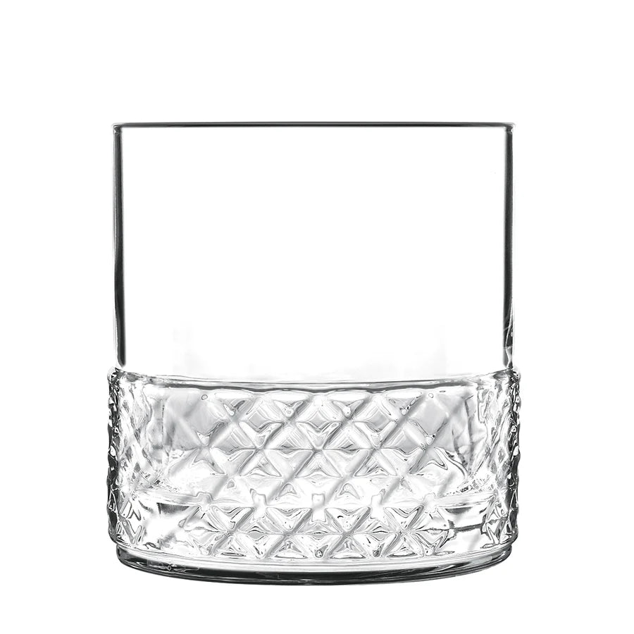 Design: Features a striking, deeply embossed diamond pattern around the base, offering a firm grip and adding a touch of vintage elegance. The top half remains smooth and clear, showcasing the color and clarity of your beverage.