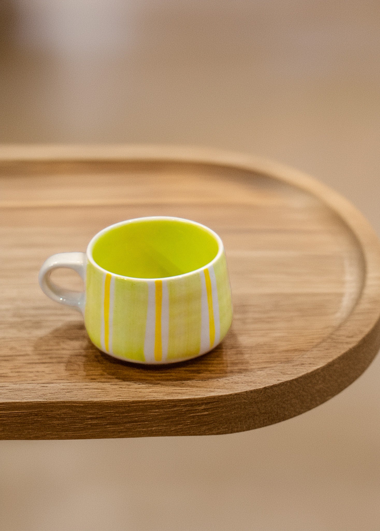 Introduce a splash of modern art and joy to your mornings! These delightful artisan mini mugs are lovingly handcrafted and glazed, showcasing a fun, uneven stripe pattern that gives each piece its distinct character. The contrasting inner glaze (vibrant neon yellow or deep cobalt blue) offers an unexpected pop of color when you take a sip.